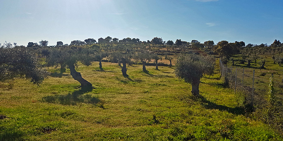 Our olive grove is 157,000 m² and embraces 2000 olive trees. It is a traditional olive grove with 70 years old olive trees. Since the land is not completely flat, it is somewhat elevated position and so it was built partially terraced with stone walls on it. You can find also lots of oaks which they call it here “Azinheiros” and few wild grown pines and cork trees.